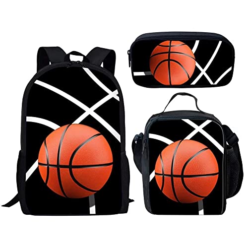 Printpub Cool Basketball Theme 3PCS School Bag Set Kids Lightweight Backpack Travel Meal Bag Small Tool Kit