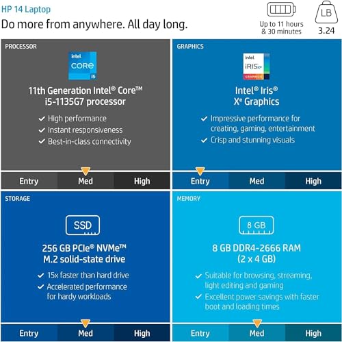 Specification: HP 2023 Newest 14 Laptop, 14 Inch Display, Intel Core i5-1135G7 Processor, 32GB RAM, 1TB SSD, Intel Iris Xe Graphics, Bluetooth, Webcam, WiFi, Windows 11 Home, Natural Silver